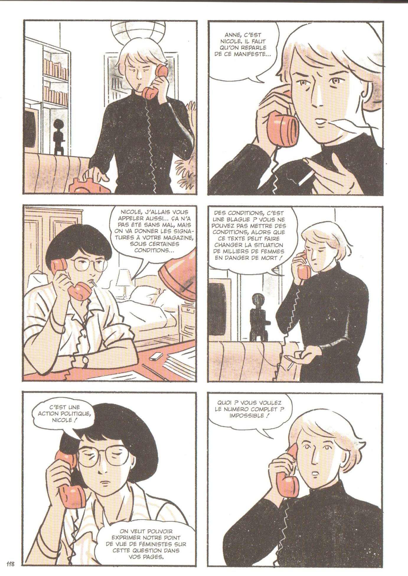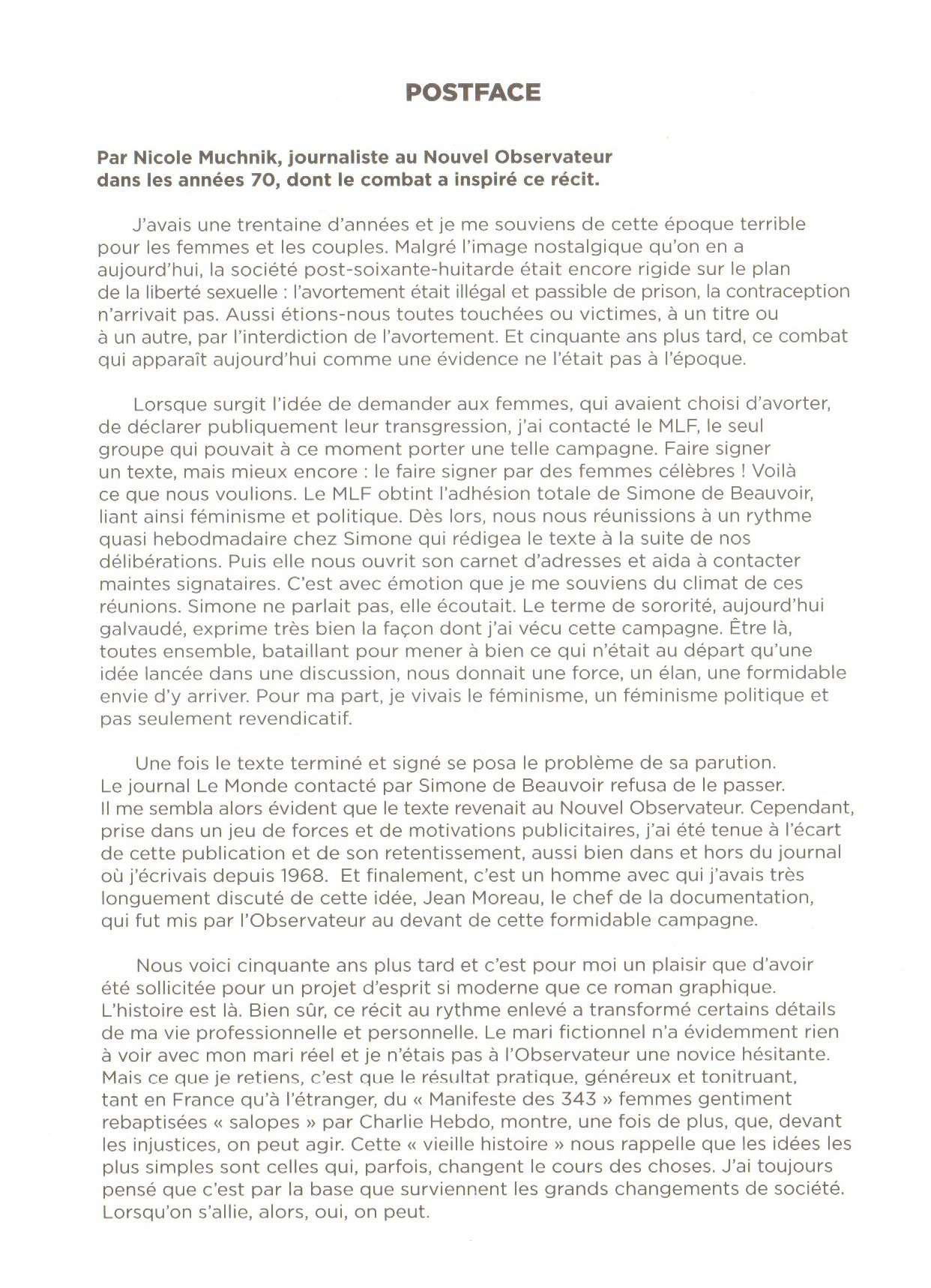 Ci-dessous quelques extraits de Le Manifeste des 343 – Histoire d’un combat chez Marabulles, avec les scénaristes Adeline Laffitte + Hélène Strag, et le dessinateur Hervé Duphot ; copyright Hachette Livre (Marabout) 2020.