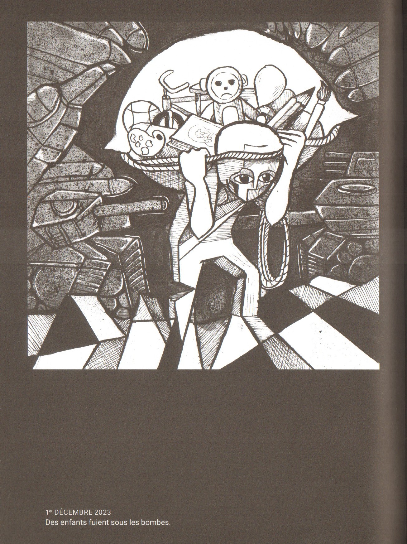 SABAANEH Mohammad, caricaturiste palestinien résidant à Ramallah. Il collabore depuis 2002 avec de nombreux médias arabes et internationaux tels Al Quds Al Arabi, The Washington Post ou Courrier international. Il enseigne aussi l’illustration à l’Université arabe américaine, dans le gouvernorat de Jénine. En 2021, il signe son premier roman graphique, Power Born of Dreams – My story is Palestine (éd. Street Noise Book, USA) qui est reconnu comme la première Bd palestinienne et qui remporte le prix du Palestine Book Awards 2022 au Royaume-Uni. La version française, parue en 2023 chez Alifbata et intitulée Je ne partirai pas– Mon histoire est celle de la Palestine, a été sélectionnée pour le prix Bulles d’Humanité 2024.