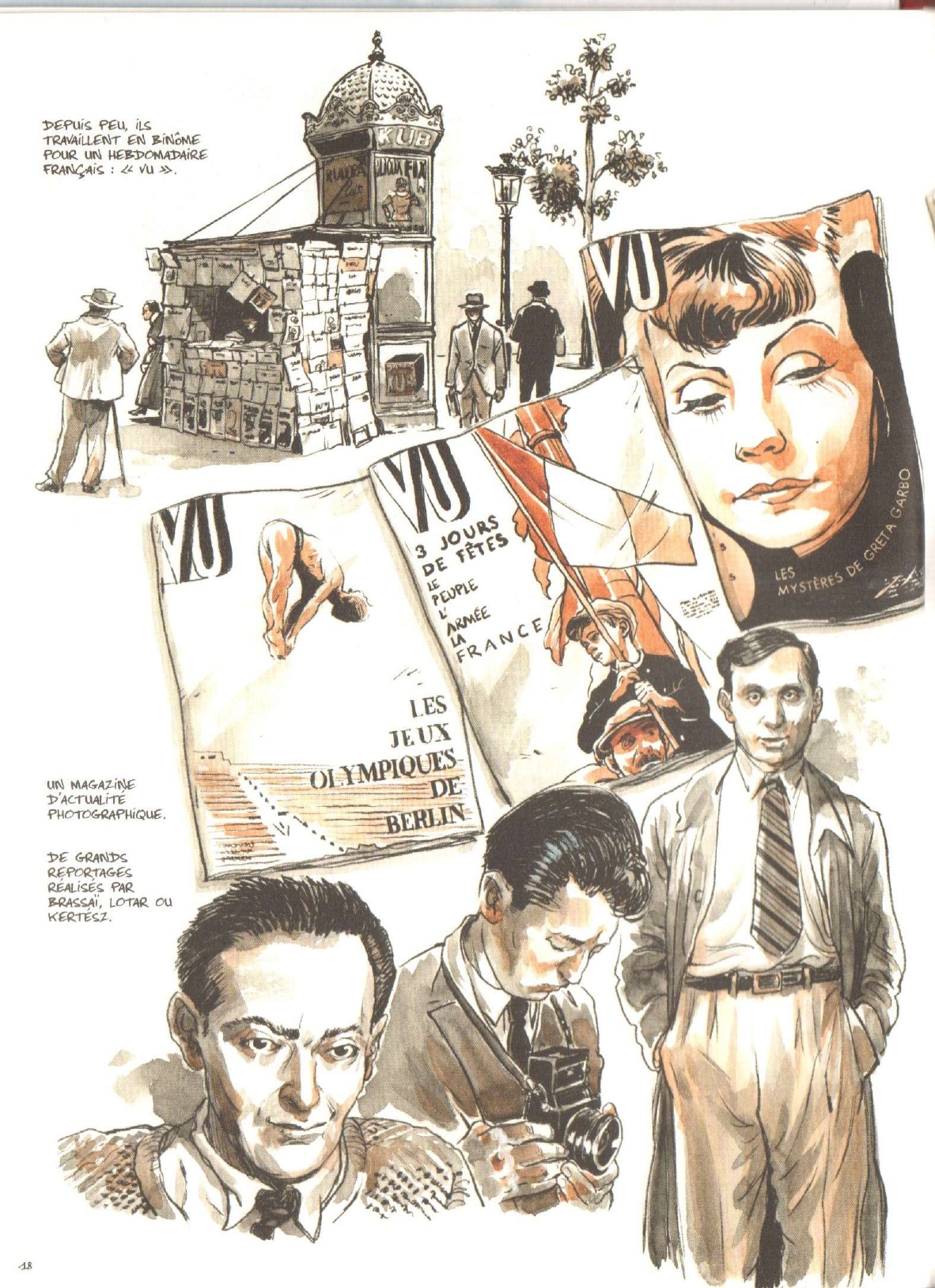 « […] Lucien Vogel est un homme qui compte dans la presse française. Pour « inventer » Vu, un magazine novateur, il s’est inspiré de la maquette, des contenus et du « chemin de fer » [Il s’agit d’une « carte routière » qui va guider la création du magazine, un « plan visuel » détaillé qui va prévoir l’emplacement de chaque élément, de la typographie à la mise en page, en passant bien entendu pat les photos.] rédactionnel de l’Arbeiter Illustrierte Zeitung ♪, l’un des titres prestigieux de Münzenberg à Berlin. […] Sa couverture de l’actualité est d’une étonnante modernité, son information diversifiée, éclectique, aborde la politique par les moyens de reportage de terrain […] Sous la direction artistique d’Alexandre Liberman [Alex Liberman (1912 à Kiev – 1999 à Miami), artiste pluridisciplinaire et durant 32 ans à la direction artistique du magazine Vogue.], la photo est devenu d’un usage constant à Vu […]. Le recours à l’héliogravure permet une reproduction soignée des images, la mise en page recherchée présente, non sans audace, les clichés des maîtres de la photographie de l’entre-deux-guerres, André Kertesz, Robert Capa, Henri Cartier-Bresson, Germaine Krull, Marcel Ichac, Brassaï, Man Ray, Gerda Taro, inventeurs du photoreportage ... » (pages 337/ 340, in Willi Münzenberg – Artiste en révolution (1889-1940) d’Alain Dugrand et Frédéric Laurent, Fayard 2008). Voir aussi Denoyelle Françoise, La lumière de Paris – Les usages de la photographie 1919-1939, tome 2, L’Harmattan 1997 ; Fontaine François, La guerre d’Espagne, un déluge de feu et d’images, BDIC – Berg International 2003 ; Leenaerts Danielle, Petite histoire du magazine Vu (1928-1940) – Entre photographie d’information et photographie d’art, Peter Lang 2010 ; Willett John, Heartfield contre Hitler, Fernand Hazan 1997 ; Zervigón Andrés Mario, The Proletarian Image between Political Agitation and Realistic Sobriety – The Arbeiter Illustrierte Zeitung and the German worker photography movement, Transbordeur n°4 (2020) ...