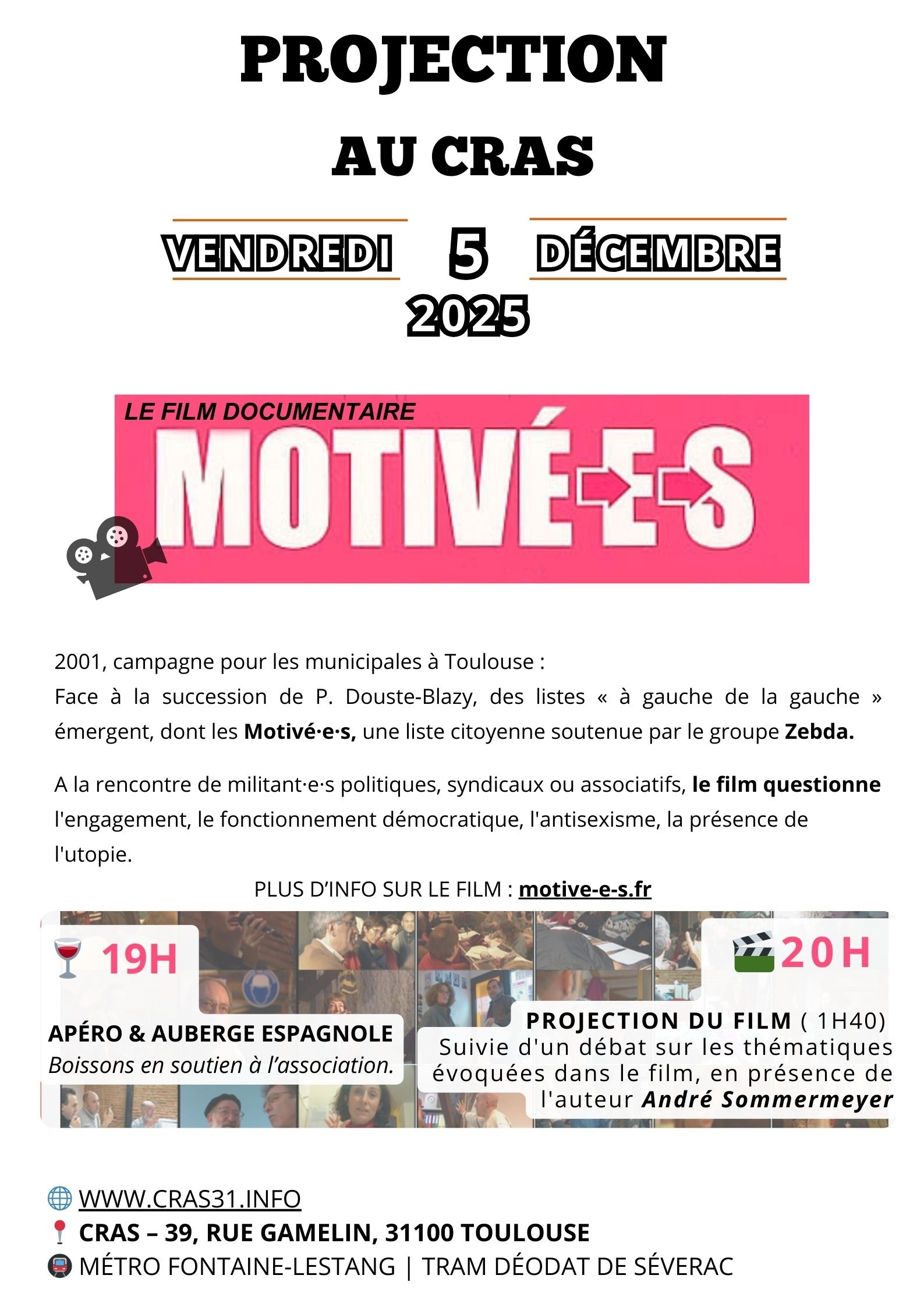 📍 Lieu : Au CRAS – 39, rue Gamelin, 31100 Toulouse