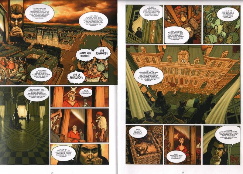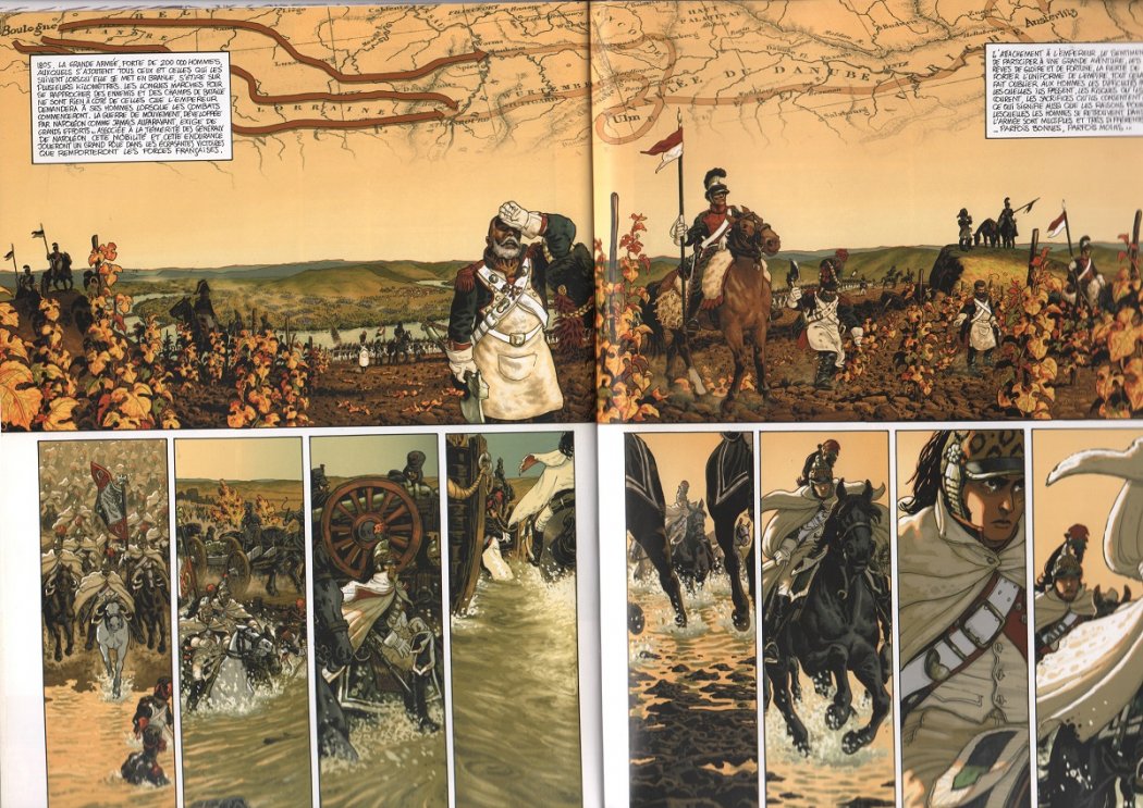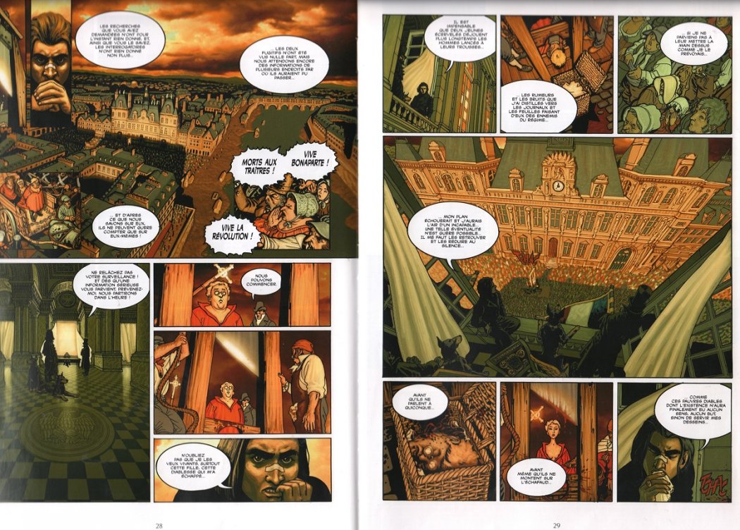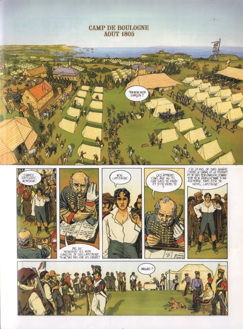Copyright MATZ (scénario) et BERTAIL Dominique (dessin) « Shandy – Un Anglais dans l’Empire » chez Delcourt 2004 et 2006. Tome 1 pages 28/ 29 ; tome 2 pages 3, 5, 18/ 19 et 46/ 47.