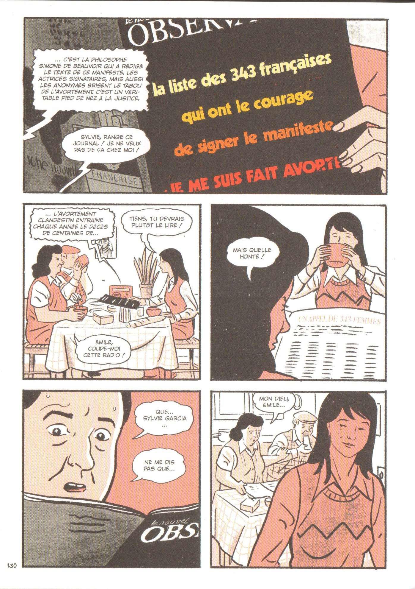 Ci-dessous quelques extraits de Le Manifeste des 343 – Histoire d’un combat chez Marabulles, avec les scénaristes Adeline Laffitte + Hélène Strag, et le dessinateur Hervé Duphot ; copyright Hachette Livre (Marabout) 2020.