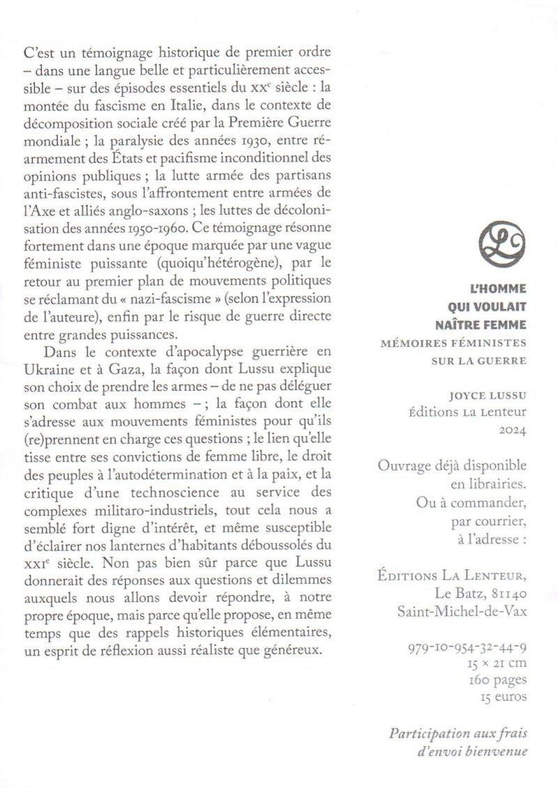 - 🎶 20h – Presentation du livre L’Homme qui voulait naître femme
